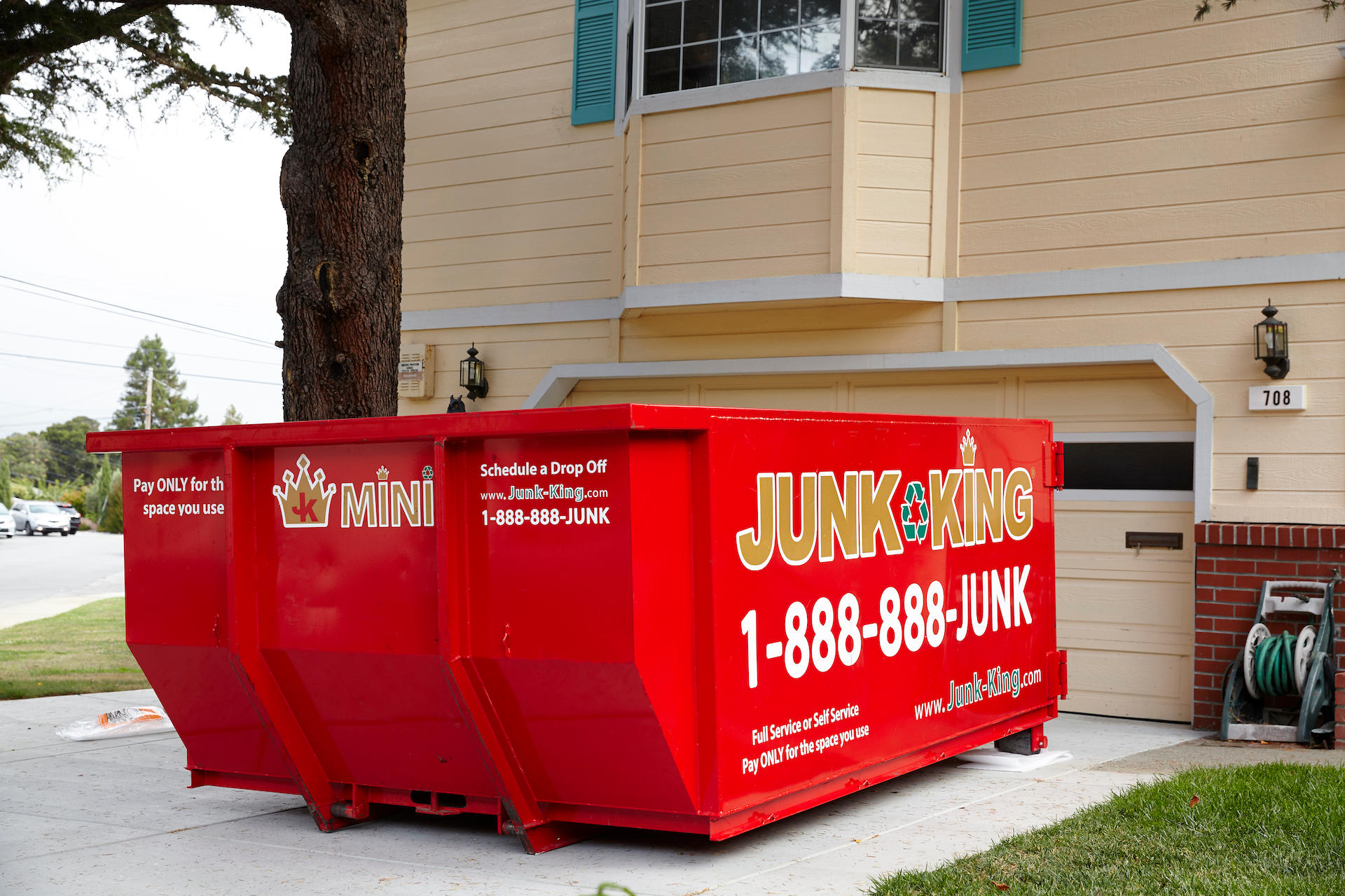 Get rid of your old items at your own pace. Rent a Junk King dumpster that's sized to fit in your driveway. You'll find it easier to use our dumpsters at your home. You'll have plenty of space to throw out your unwanted items and junk. And you'll only pay for the space you use. Save money with a dumpster rental! We drop it off, you fill it, we dump it! Call us to schedule your dumpster rental.